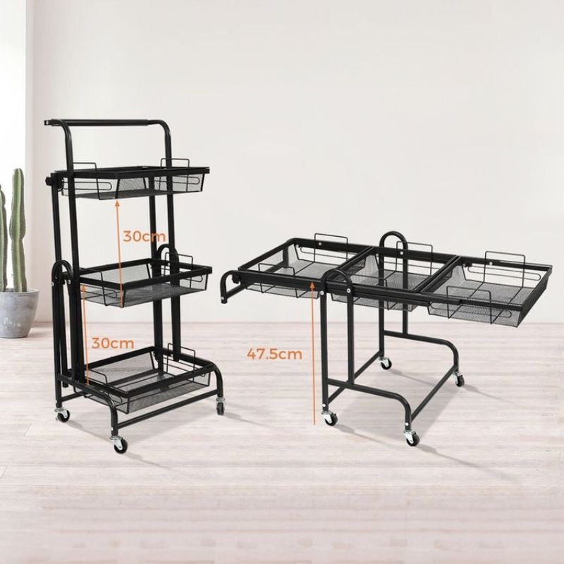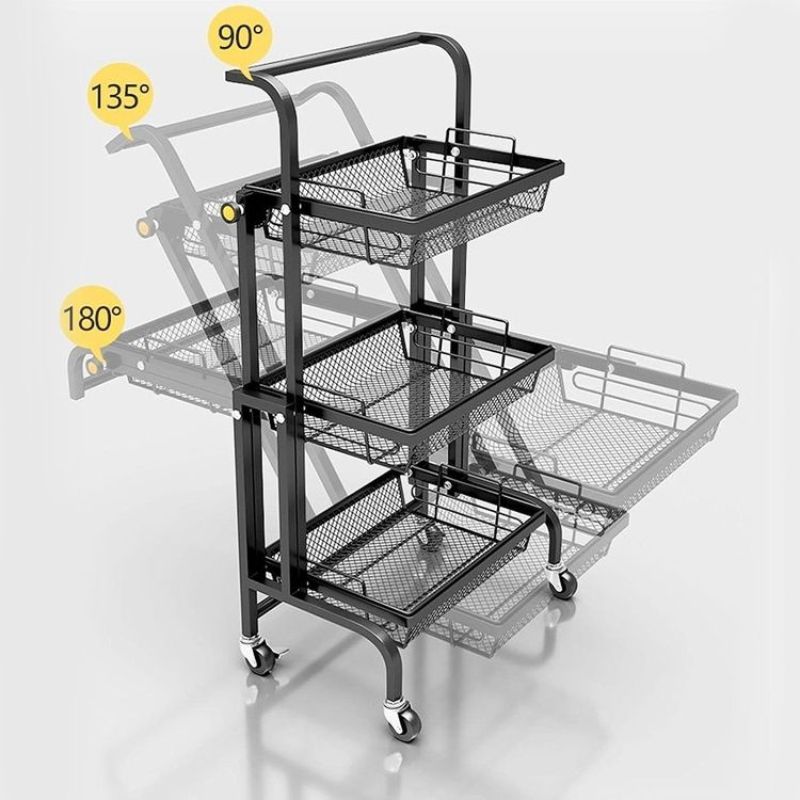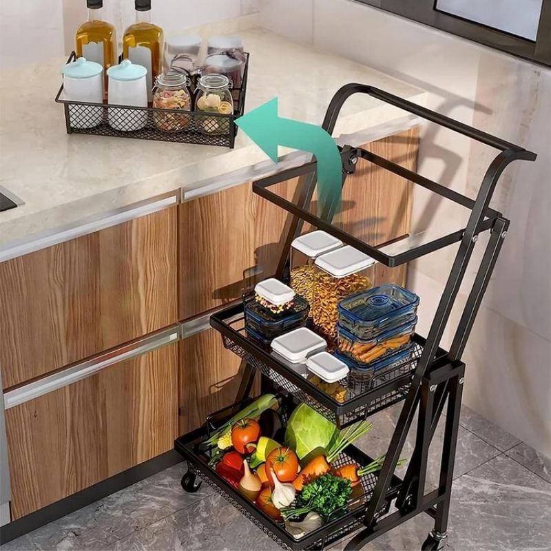 La Clinson FlexiCart™ est le chariot de rangement intelligent qui s’adapte à vos besoins. Grâce à son design 3‑en‑1 pliable et mobile, il passe en un instant du format compact au mode étendu, pour organiser vos courses, fruits, légumes ou produits ménagers avec style et praticité.
