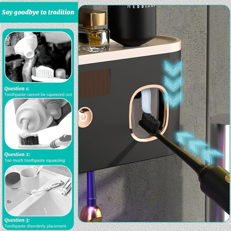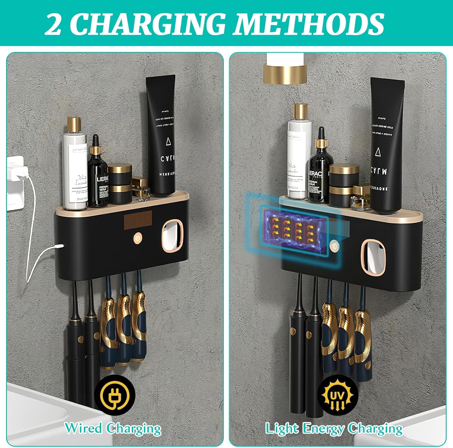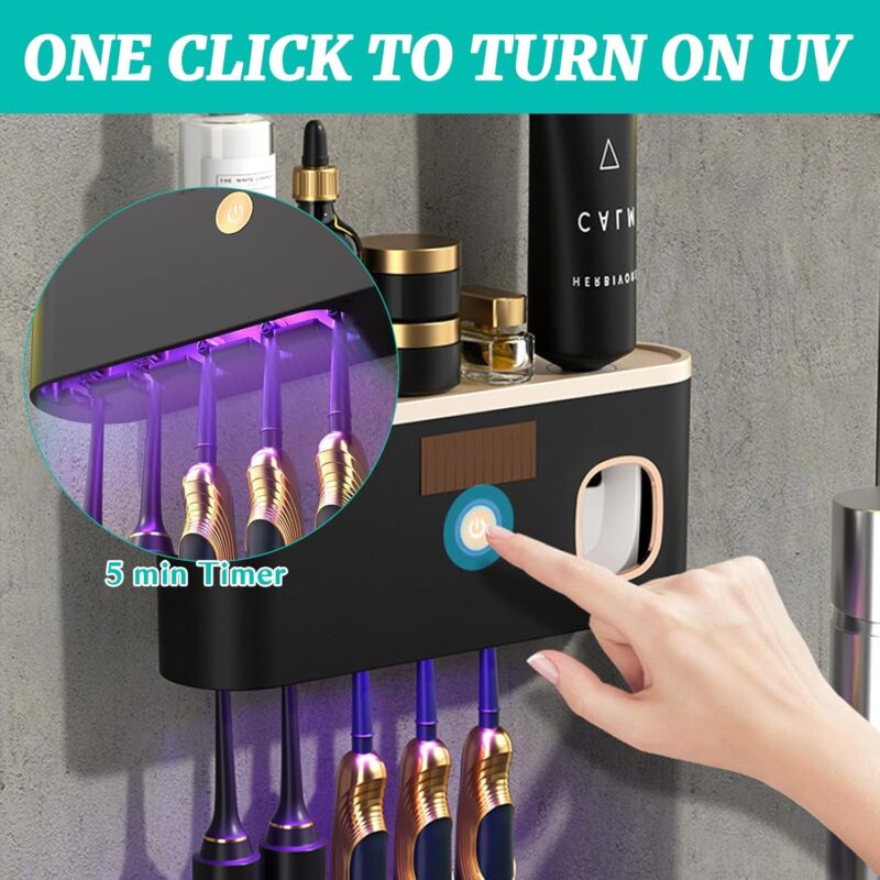 Porte-Brosses à Dents avec Stérilisation UV – + Distributeur Automatique de Dentifrice